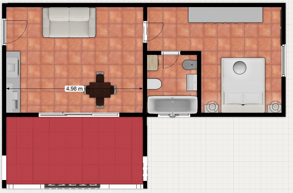 Composizione: L'appartamento è composto da un soggiorno con angolo cottura, una camera da letto e un bagno.Spazi esterni: Dispone di una terrazza di 15 mq.